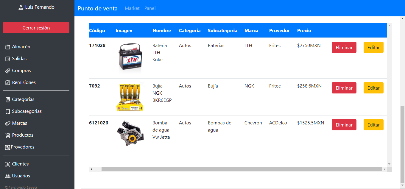 Esta aplicación web permite gestionar el almacén, proveedores, remisiones entre otras opciones más. Se conecta al mismo servidor que su versión móvil.